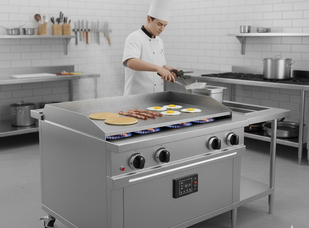 Bếp chiên phẳng dùng gas là một thiết bị không thể thiếu trong các nhà hàng, khách sạn, quán ăn và bếp ăn công nghiệp.