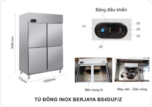 ✔️ Thông số kỹ thuật Tủ đông 4 cánh inox Berjaya BS4DUF/Z